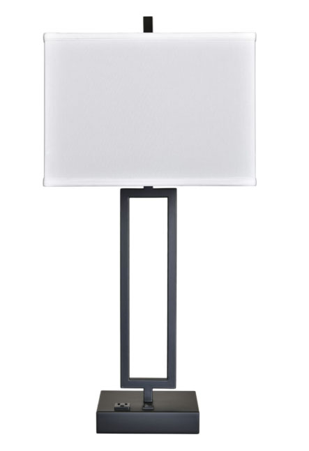Add a bold, modern touch to your guest rooms with the Gatsby Black Single Table Lamp with Outlet, designed for hospitality environments. Featuring a sleek black finish, an open rectangular frame base, and a white linen rectangular shade, this lamp delivers a clean, architectural look ideal for contemporary and upscale hotel interiors.