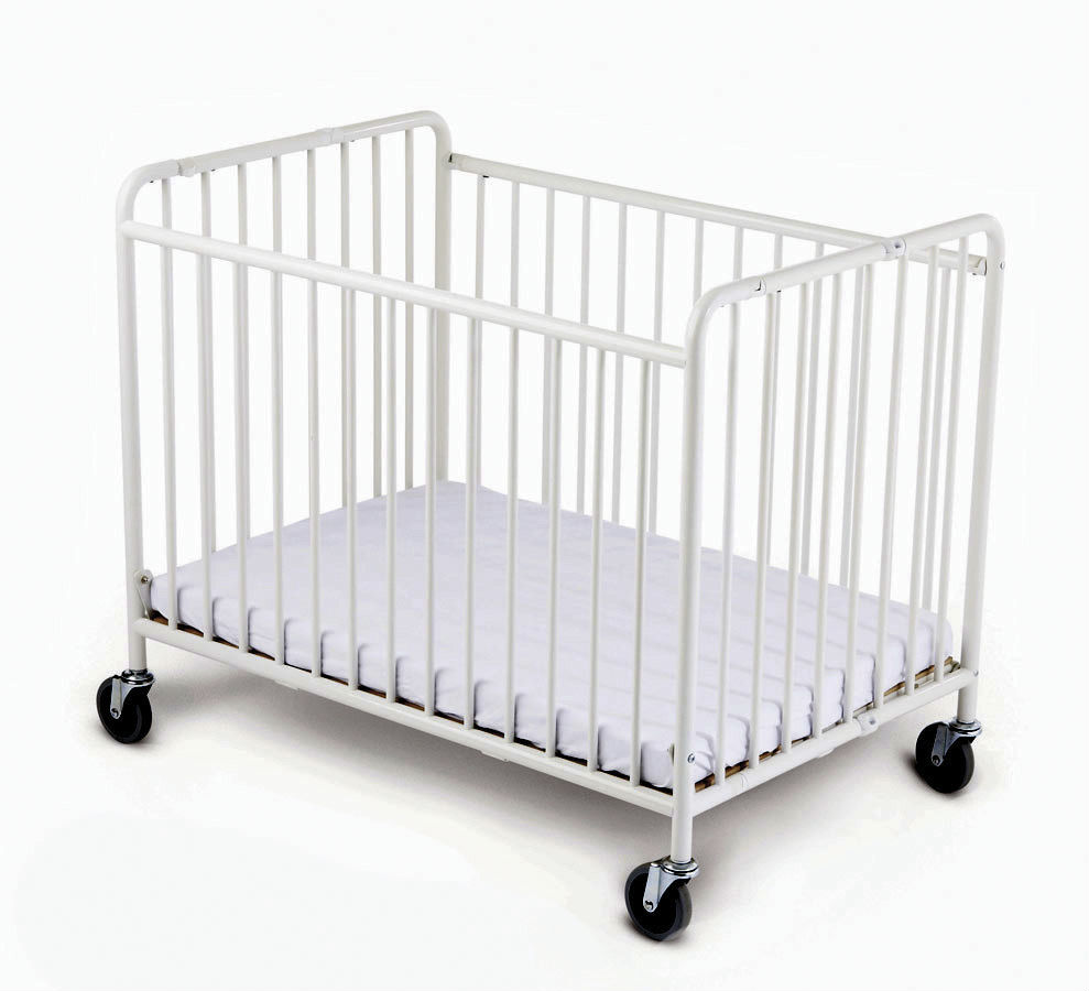 StowAway™ Compact Steel Folding Crib with 4" Casters and 2" Foam Mattress, White